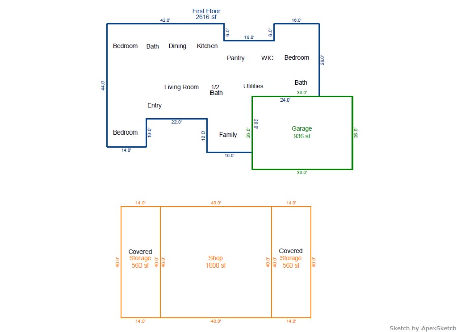 Located on a self-contained 4.66-acre lot within a residential subdivision located in the Horseshoe Creek Ranch Subdivision, the Manager’s House is located approximately 0.35-miles east of the main body of the ranch. The home is newly constructed (2022) of wood framed construction with wood siding and a composite shingle roof. It has three-bedrooms, two and one-half baths, and a three-car attached garage. Finishes include wood flooring throughout, quartz counters and custom cabinetry, tiled baths, and covered porch. There is a 40-foot by 40-foot shop with an RV sized garage door, concrete floors, overhead heater, and finished sheetrock walls. The shop has two 14-foot-wide covered carport areas on each side of the building.