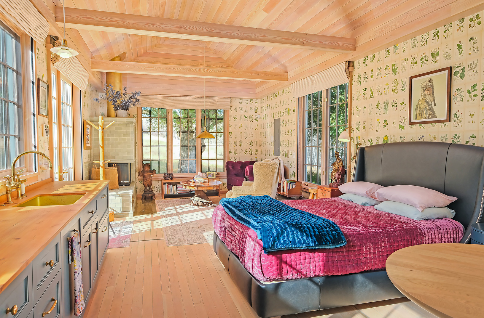 As a nestled “owner’s getaway” this improvement is on the exact location of the original homestead from 1915. The new home was constructed 2017-19 on the site, reusing much of the original materials from the homestead. The main level includes a bathroom, kitchen, and open living room / bedroom with a sleeping loft above. Finishes include reclaimed wood floors, custom marble tiled bath with steam shower, reclaimed butcher block kitchen counter, custom built-in cabinetry including drawer fridge, wood tongue and groove ceiling with wood beam accents, woodburning fireplace, wrap around deck, copper roof, custom cedar shingle siding, outdoor stone fireplace with wood fired pizza oven, electric blinds and shades, generator, high-end water system using the original artesian spring, security / fire / carbon monoxide detection systems, and air conditioning, as well as two security gates. A glamping tent site is located within easy walk from the homestead for guests.  Full utilities are provided for a second home on the site.